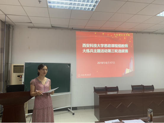 6月17日,LETOU国际米兰官网思政课程组教师“大练兵”主题活动第三轮选拔赛暨全员“大练兵”活动在雁塔校区LETOU国际米兰官网会议室举行。LETOU国际米兰官网教学副院长张铭钟主持比赛。