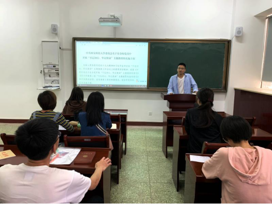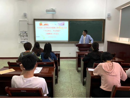 会上,李明首先带领支部党员重温了习近平总书记在“不忘初心、牢记使命”主题教育工作会议上的重要讲话精神。接着,按支部制定的主题教育专题学习计划,与参会人员共同学习主题教育实施方案。通过学习,大家深刻认识到,开展“不忘初心、牢记使命”主题教育是党员当前的重要政治任务,作为马克思主义理论学科研究生党员,要“读原著、学原文、悟原理”,认真学习并领会习近平总书记的重要讲话精神,充分认识主题教育的重要意义,严格落实“守初心、担使命,找差距、抓落实”的总要求,将实施方案内容落到实处,将责任和使命牢记心间。要始终牢记“为中国人民谋幸福,为中华民族谋复兴”的初心和使命,深入学习马克思主义专业知识和习近平新时代中国特色社会主义思想,结合工作实际,促使党性修养和学习工作双提升,切实履行学生党员的责任和担当。
