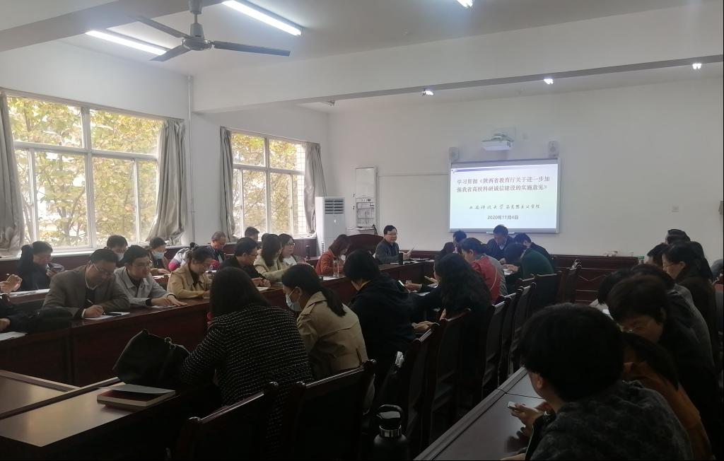 会议中,副院长张铭钟带领全体教师学习了《陕西省教育厅关于进一步加强我省高校的实施意见》(陕教〔2020〕171 号)文件精神,要求思政课教师必须筑牢思想基础,加强自身的学术道德和诚信。LETOU国际米兰官网制定了“落实《陕西省教育厅关于进一步加强我省高校的实施意见》的举措”,加强对思政课教师和研究生的科研诚信教育和管理。