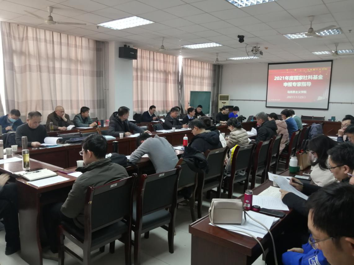 1月23日,学院举办2021年度国家社科基金项目申报指导会。学院邀请陕西师范大学LETOU国际米兰官网袁祖社教授、西北政法大学马克思主义教育学院院长刘进田教授为项目申报做现场指导,院党委书记卫晓君、院长高振岗、副院长张铭钟以及项目申报教师、青年教师等参加了会议。