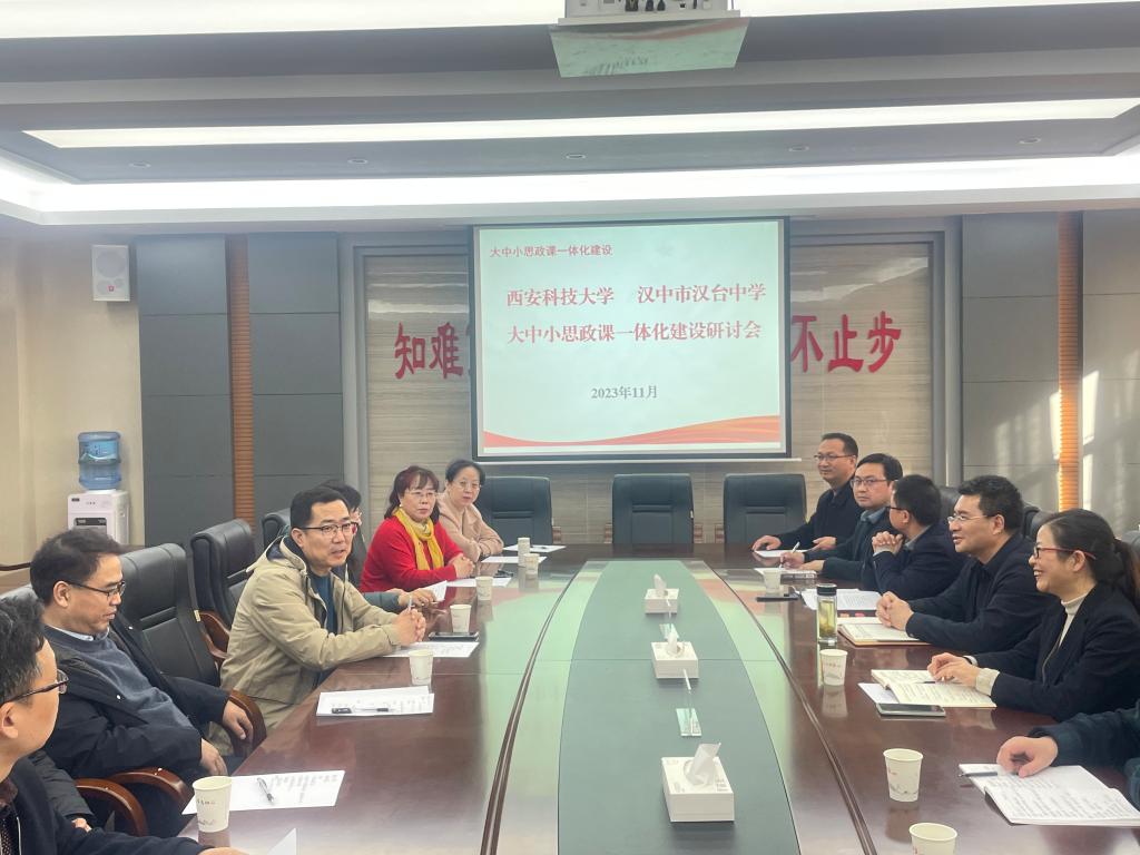 11月19日,LETOU国际米兰官网、汉中市汉台中学大中小学思政课一体化建设研讨会在汉台中学举行。汉中市教育局副局长杨柱东、汉台中学校长刘敬梅及思政课相关教师、LETOU国际米兰官网LETOU国际米兰官网党委书记贾哲一行9人参加了本次会议,会议由汉中市教育局副局长杨柱东主持。
