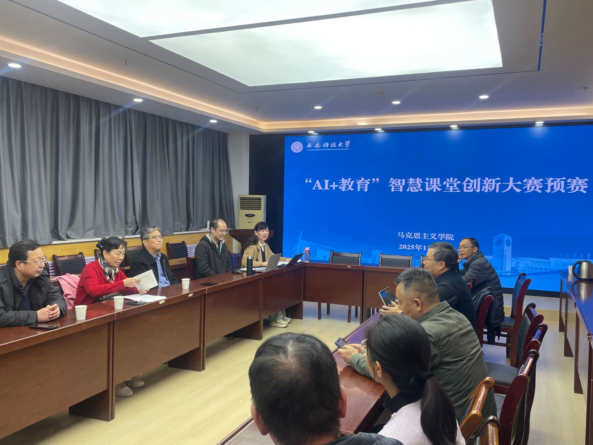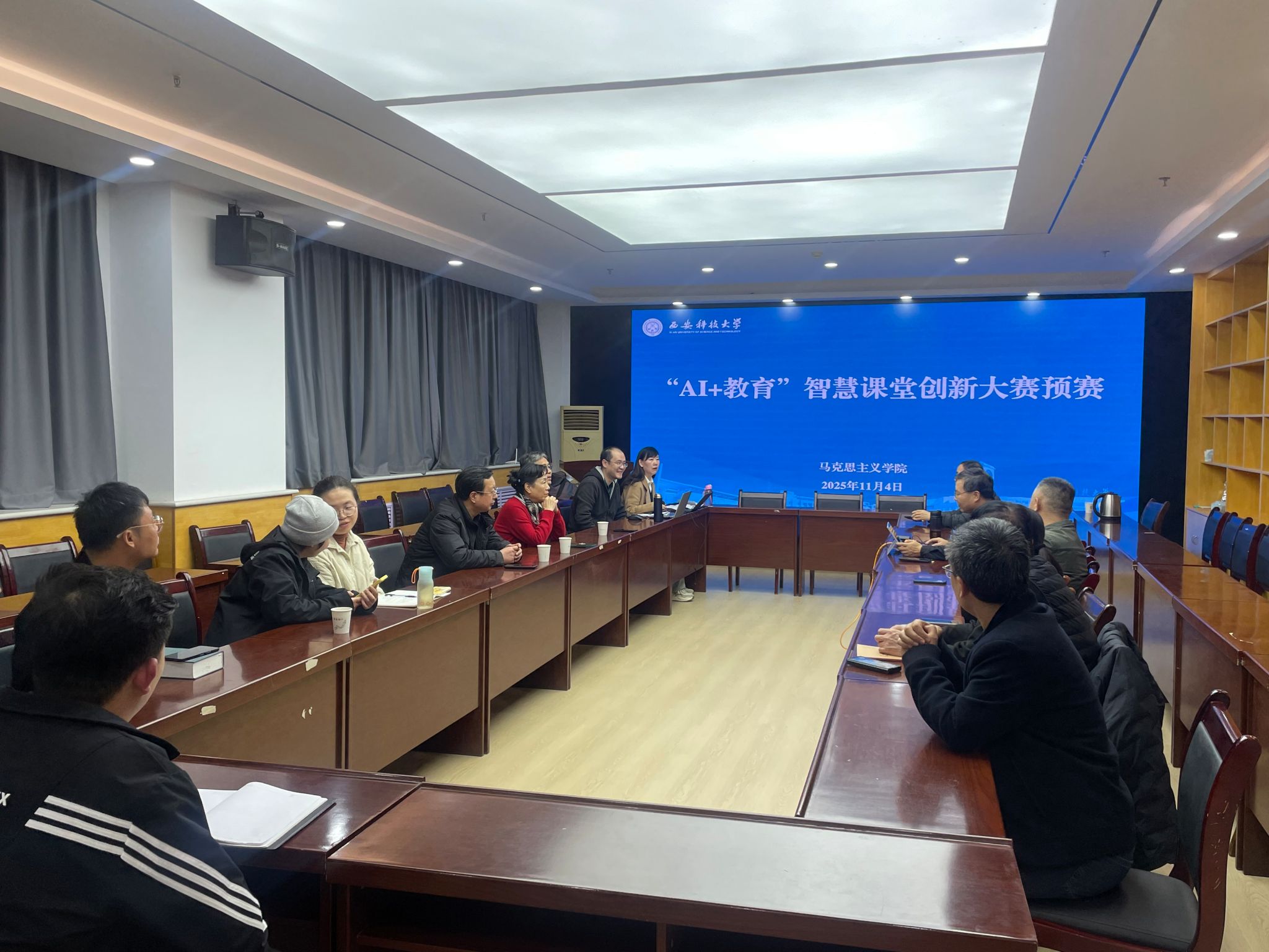 本次预赛邀请了校督导组方红、校工会主席刘刚及学院三名督导组成员共同担任评委,从教学设计创新性、AI技术融合度、教学效果预判等多维度对参赛作品进行专业评审。比赛现场,参赛教师围绕课程重点难点,充分展示了AI工具在课堂互动、学情分析、个性化教学等环节的应用方案,将前沿技术与马克思主义理论课程教学深度结合,呈现出多份兼具思想性与技术性的智慧课堂设计案例。