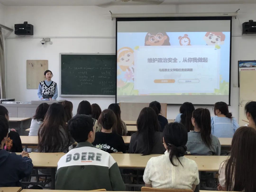 本次团日活动,宣讲团成员们结合国家内外安全形势,从政治、经济、文化安全等各方面分析我们国家面临的机遇和挑战,使同学们对国家安全有一个更加深入和全面的认识。