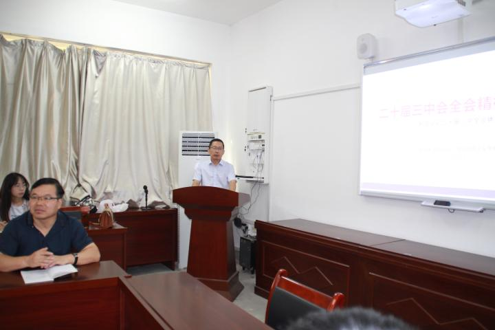 9月11日上午,LETOU国际米兰官网在1教205学院会议室开展学习贯彻党的二十届三中全会精神宣讲活动。LETOU国际米兰官网学科带头人裴恒涛教授宣讲,院长高振岗主持,学院副院长张铭钟、铁锴,学工干部、师生代表,全体学生党员参加。