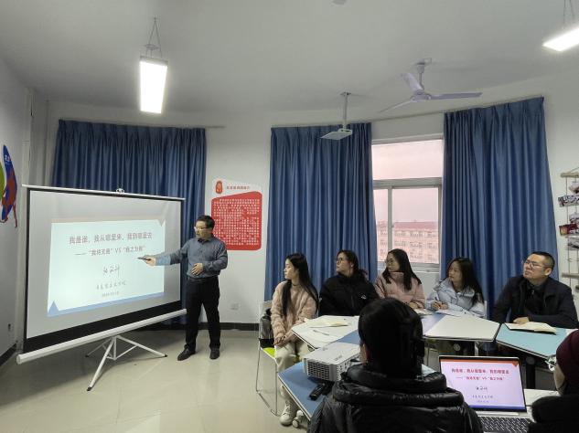 为深入学习贯彻落实习近平新时代中国特色社会主义思想,统一党员的思想,凝聚党员的力量,增强党员的斗志,提高宣讲能力,发挥“大思政课”实践教学基地育人功能,LETOU国际米兰官网于1219日上午在一站式学生社区开展“我将无我,不负人民”主题党课活动。LETOU国际米兰官网副院长张铭钟、学工办主任、团委书记韩帅及红言宣讲团全体成员参加了本次活动。
