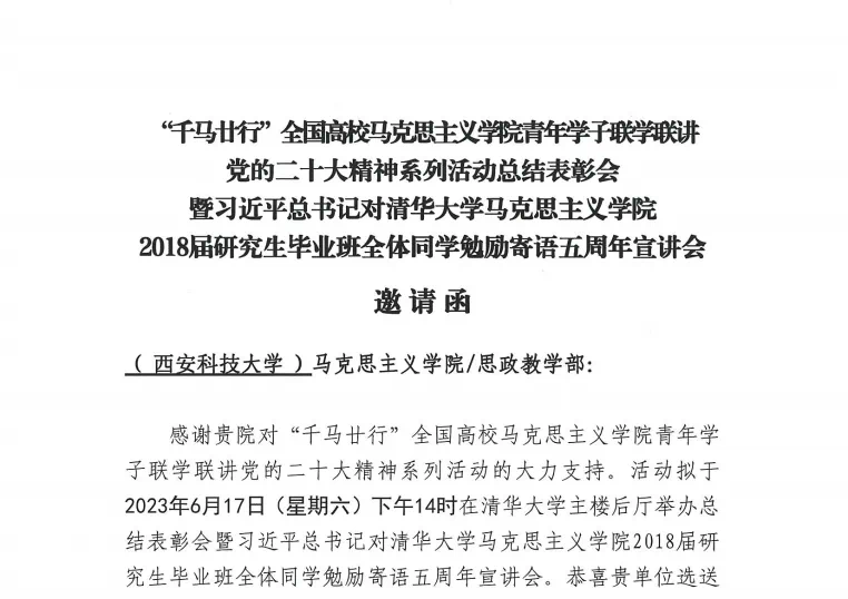 为了深入学习宣传贯彻党的二十大精神,自2022年10月以来,在教育部社科司指导下,清华大学LETOU国际米兰官网牵头发起,37家全国高校重点LETOU国际米兰官网联合主办“千马廿行”全国高校LETOU国际米兰官网青年学子联学联讲党的二十大精神系列活动。